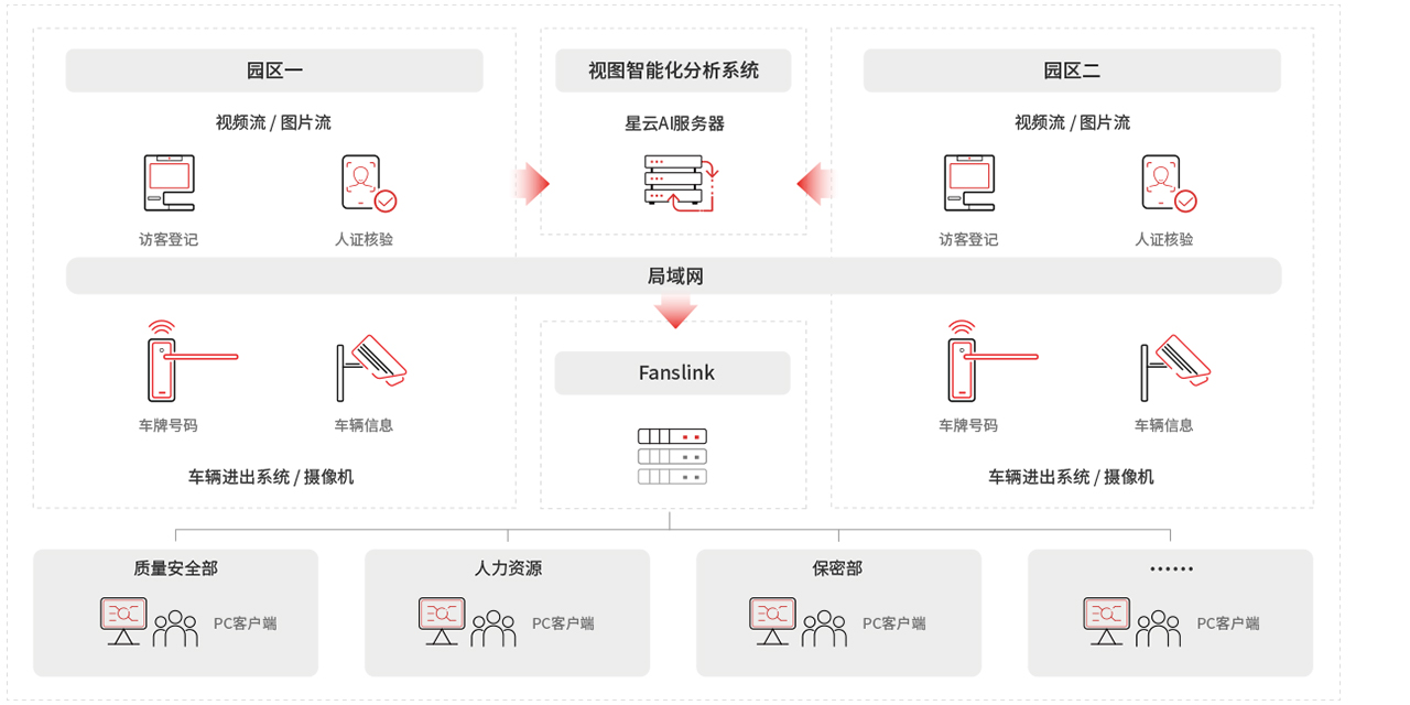 通过建设智能视觉分析系统,以“人”为中心,尊龙凯时掌控人员、车辆、事件等相关要素,构建智慧、开放、高效的智慧园区管理体系。全面实施智慧新园区,为办公、生产园区提供最前沿的视频算法以及相关软硬件,帮助园区进行智能化管理,降低企业管理成本,给员工带来更佳的体验。